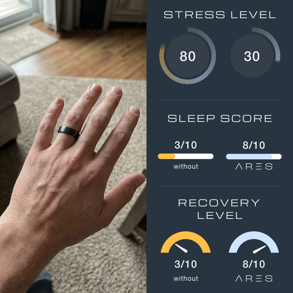 “Ares is part of my daily routine now. Mental clarity is better, especially during long client calls. Feels No pills, no BS, just results from wearing it every day my focus at work. I feel more present, more locked in. Never thought a ring could do anything, but I’’m operating at a better frequency.”