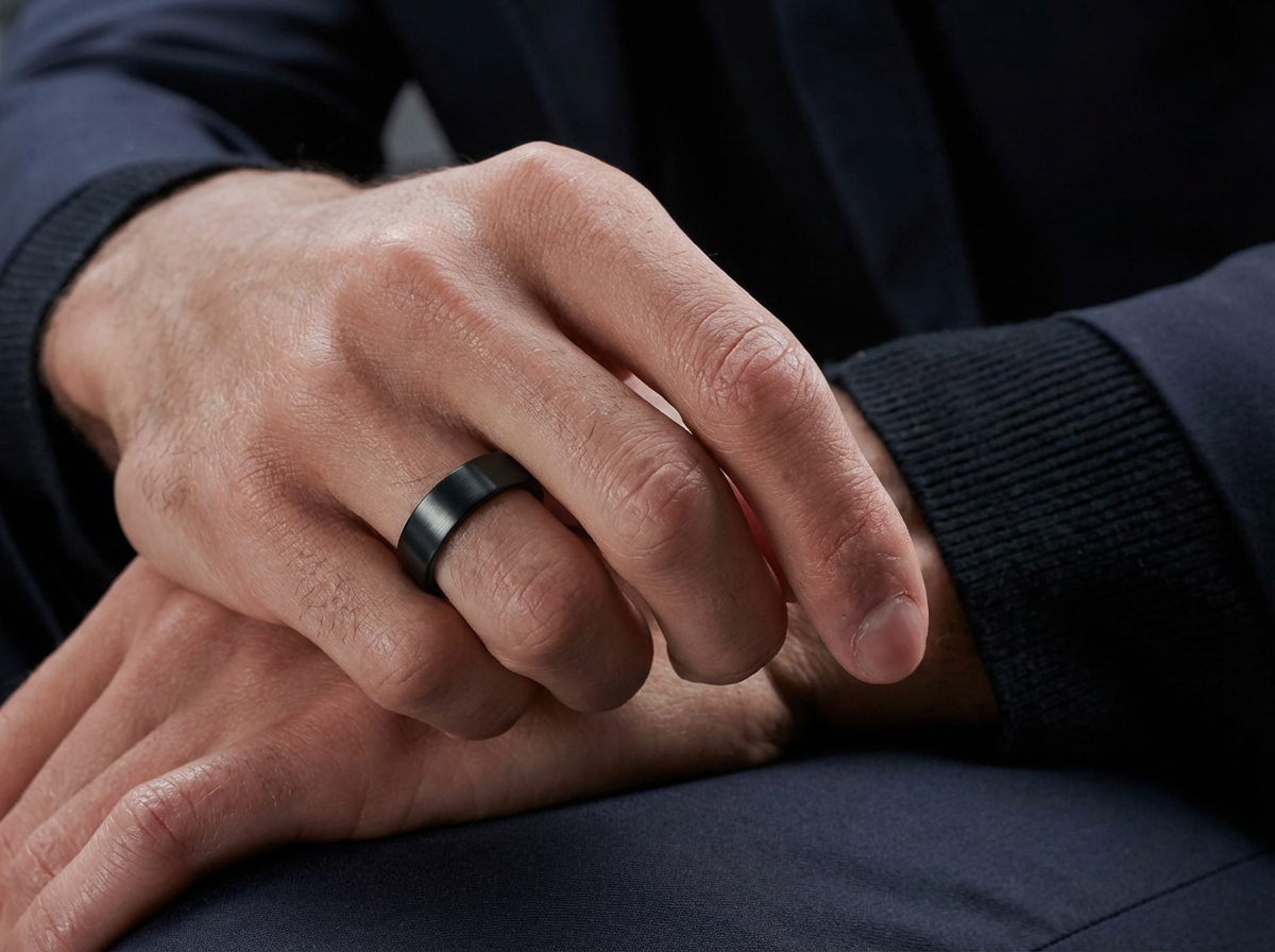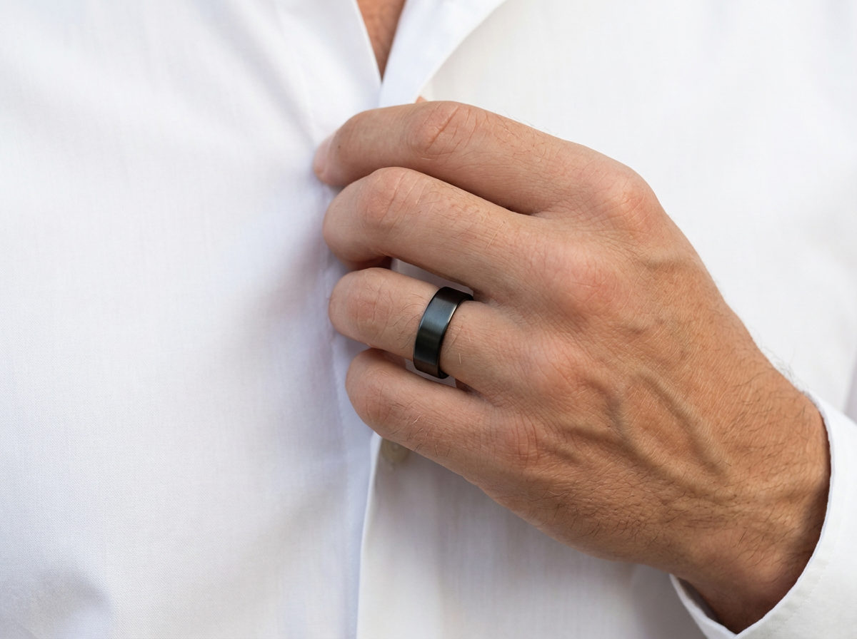 - Adjustable open-band fit (sizes 7–13) | Fits most men's fingers